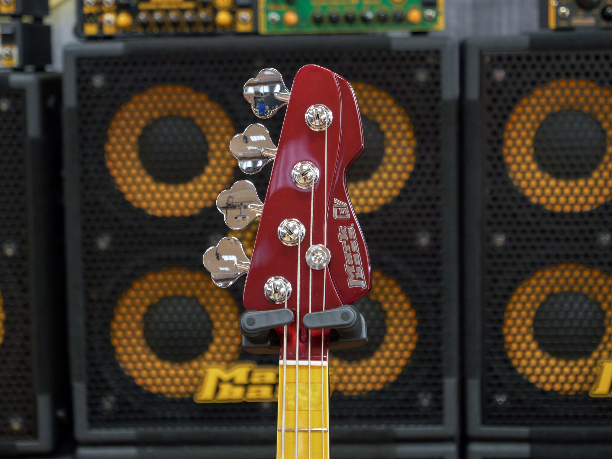 The GV GOG (Godfather of Gospel) basses, approved by Markbass top-artist Andrew Gouchè, feature two new J-style Markbass Noiseless pickups that are very touch-responsive, giving a super defined and accurate tone without hum noise even if selected one at time, with separate volume control for each of them and a simple tone (low-pass filter) control to roll off highs. The J-style body is made selected alder, finished in two new amazing color options: Blue Sky or Red Passion.